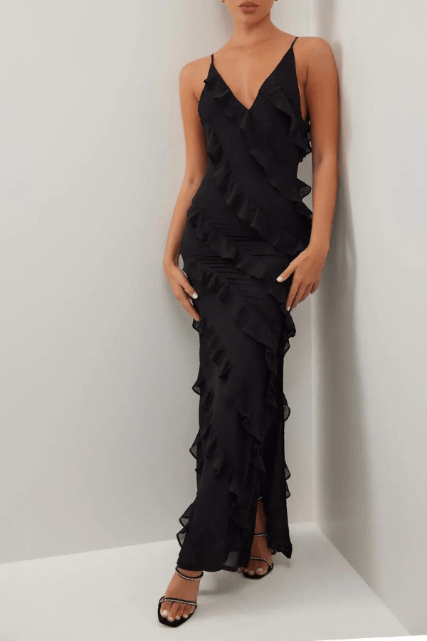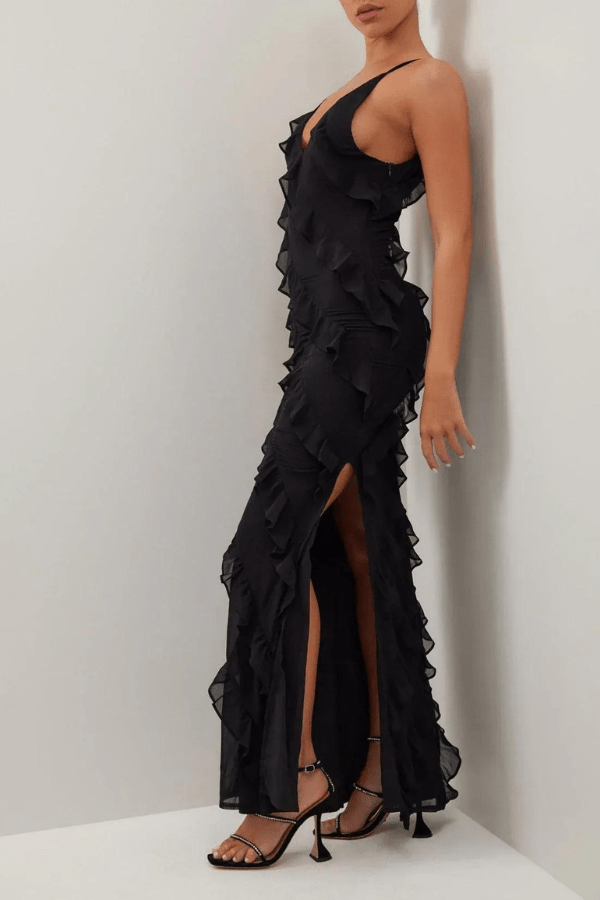 • The ruffle zippered long dress can be styled in numerous ways to suit different occasions and preferences.