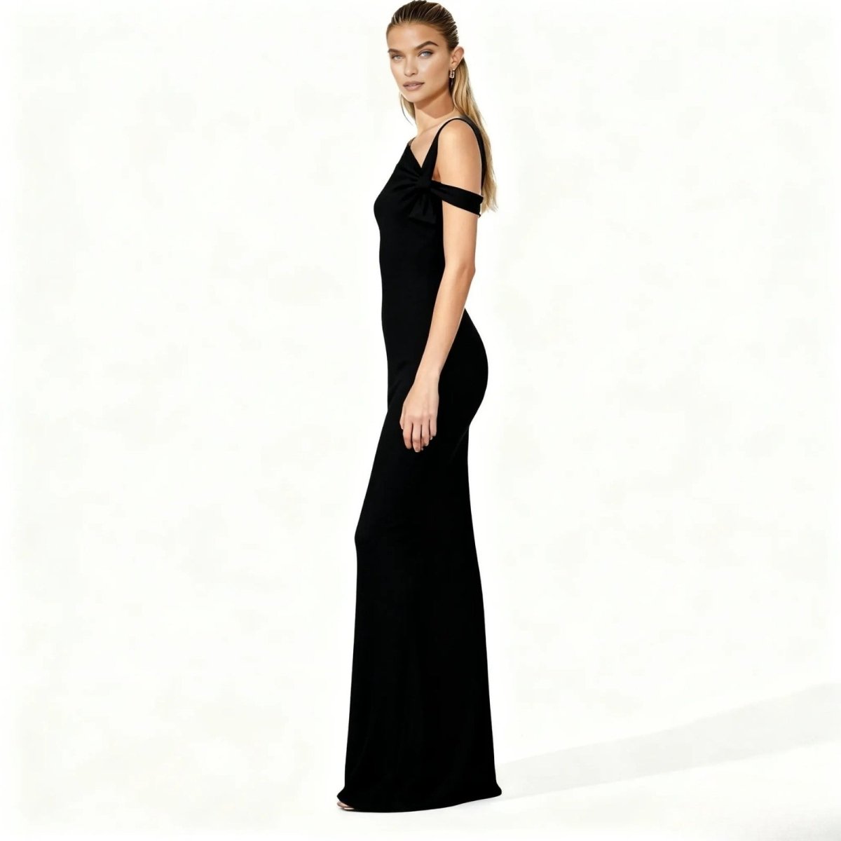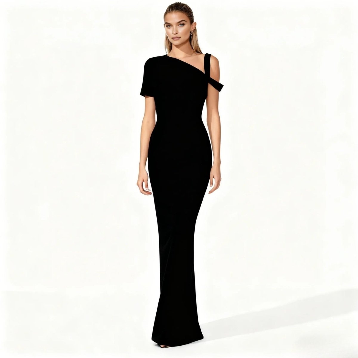 Define the room the moment you enter. This is not just a dress; it's an experience in sculptural elegance. Feel the whisper-soft, double-lined jersey fluidly trace and celebrate your form, creating a silhouette that is both powerful and profoundly feminine. The artful, asymmetrical neckline draws the eye, a modern masterpiece of design that frames your collarbone with sophisticated allure. Imagine the quiet confidence as you move, the fabric draping flawlessly with every step. This is your armor for the moments that matter—from a gallery opening in New York to a moonlit wedding in Napa.