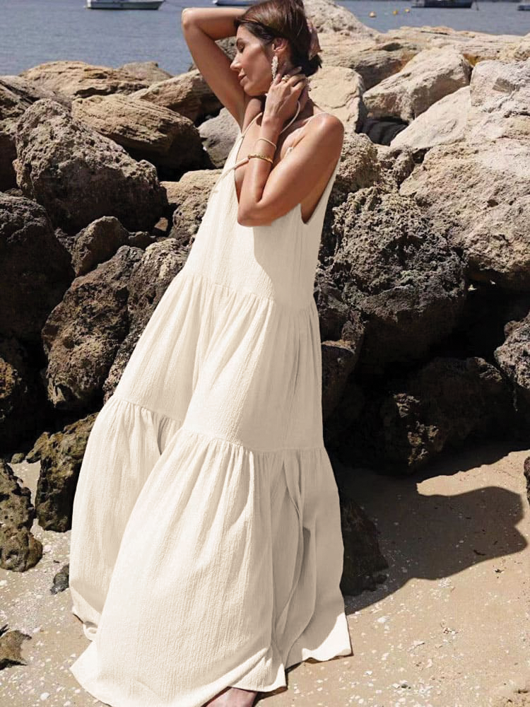 Step into warm-weather ease with the Evelyn sundress. Designed with a flowing tiered silhouette and sleeveless cut, this lightweight piece moves effortlessly from beach to casual evenings. The textured fabric and pull-on style make it a go-to for comfort and simplicity.