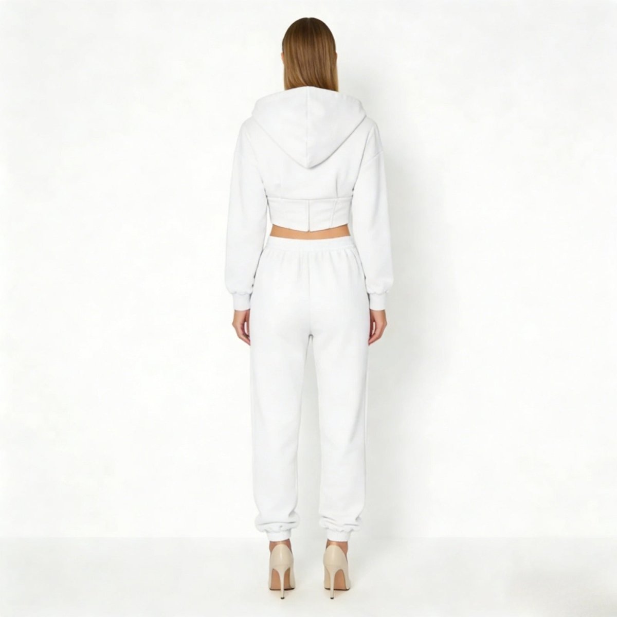 Redefine your comfort. This isn't just a sweatsuit; it's a statement of effortless power and style. Imagine the feeling of plush, soft-brushed fleece against your skin as the structured corset waist cinches your silhouette, creating a look that’s both relaxed and refined. From your morning coffee run to an evening out with friends, this set is your new uniform for looking impeccably put-together without trying. It’s the confidence of a perfectly curated outfit, with the unparalleled comfort of your favorite loungewear. Elevate your everyday.