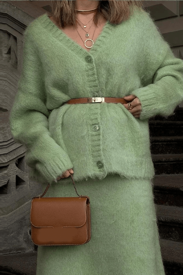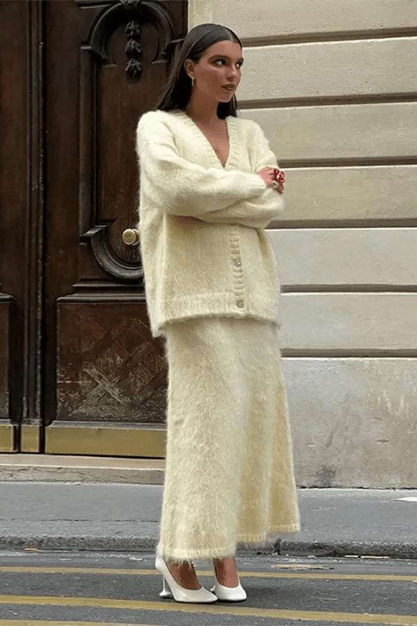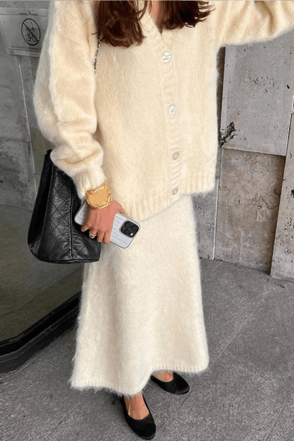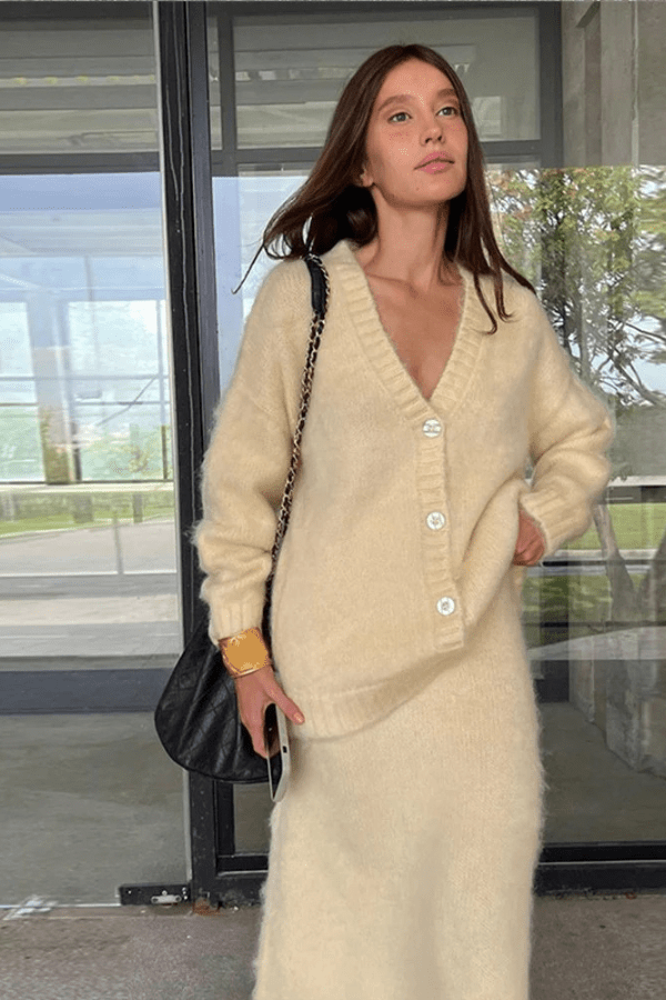 Ideal for the cooler months, this set combines versatility and elegance, making it a must-have for your autumn collection. Whether you’re headed to a meeting, a casual outing, or a weekend brunch, this knit cardigan and skirt suit ensures you stand out in understated, timeless fashion. Pair it with heels or boots for a polished look that exudes confidence and sophistication. Perfect for those who appreciate modern, high-street elegance with a touch of comfort