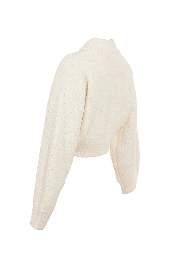 The 'Josephine' bomber jacket is crafted from the softest chenille knit, ensuring you stay ultra-warm and cozy. Featuring a button-front closure, deep patch pockets, and an incredibly soft texture, it's the perfect layering piece. Style it effortlessly with our 'Zaira' dress or pair it with jeans for a chic, laid-back look.